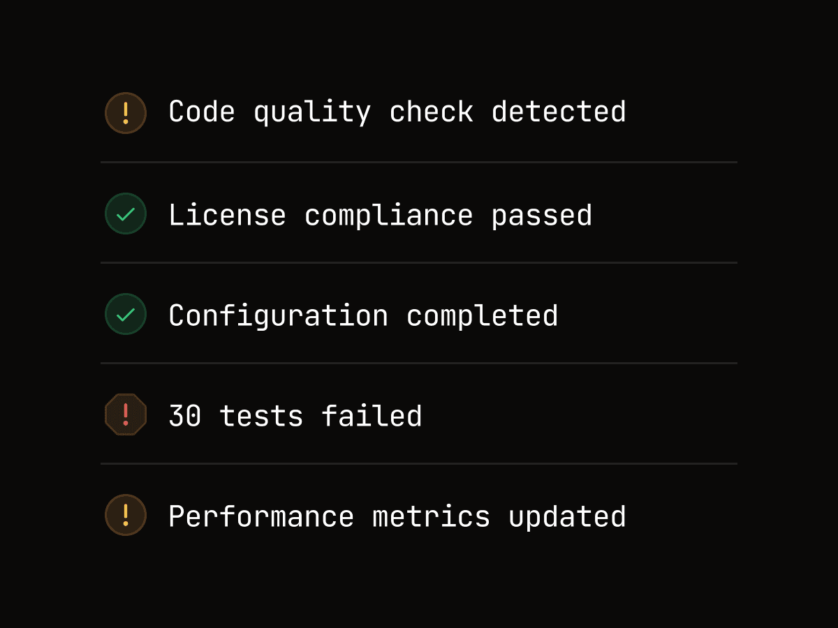 Clear pass, warning, and failure states help teams act fast without digging into logs.