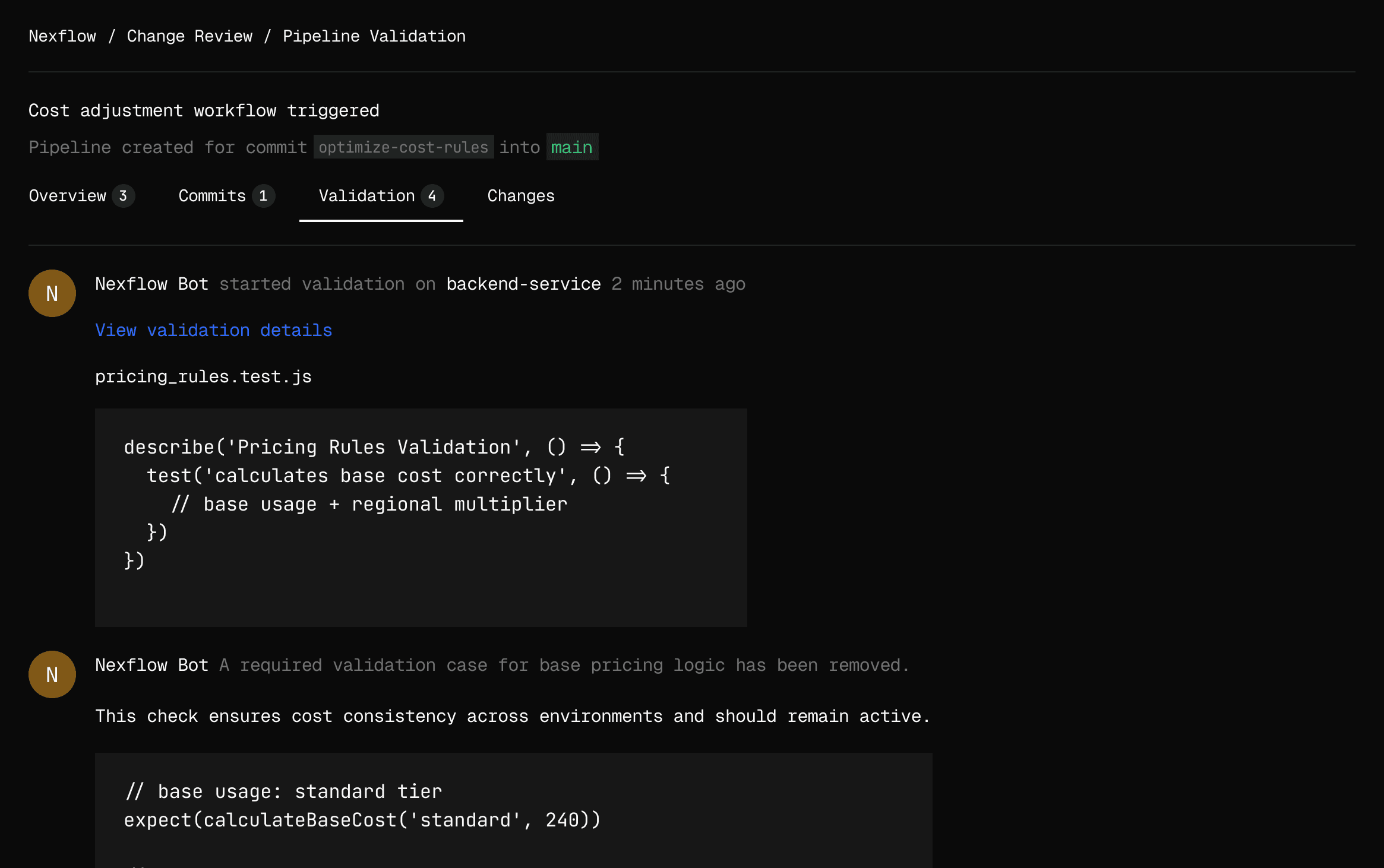 Automatically validate cost, logic, and configuration changes during reviews—so nothing unnoticed.